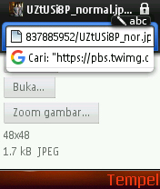 Keempat, setelah sampai di konfirmasi unduhan gambar, ukuran gambar tersebut masih kecil yaitu berukuran 48x48 , langsung gulir ke url gambar tersebut dan yang harus anda hapus adalah seperti tadi akhirannya tersebut, yaitu _normal.jpg seperti sshot ini.